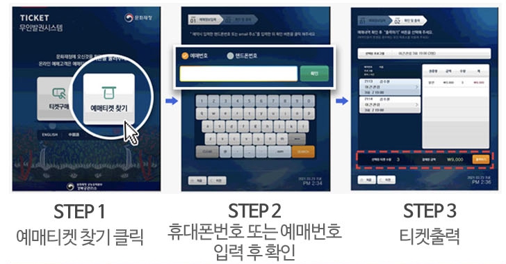 * 경복궁 야간관람 예매 고객은 관람 당일 경복궁 무인발권기에서 예매티켓 출력 후 입장하시면 됩니다. *