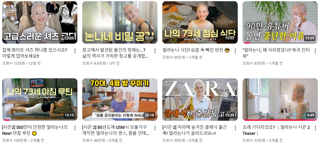 ✔ 밀라논나 유튜브는 40여 년을 패션계에서 몸담았던 만큼 패션에 대한 이야기와 함께 라이프 스타일에 대한 내용을 담고 있습니다.