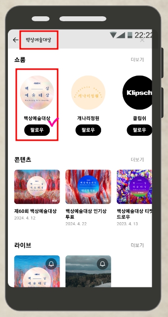 1. 검색창에 백상예술대상 검색 후 팔로우 하기