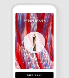 인기상 투표 후 인증서를 공유 완료하면 추가 투표권을 발급합니다.