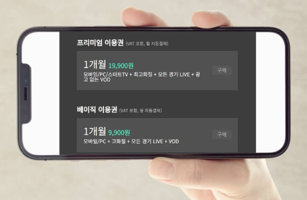 모바일/PC +고화질+모든 경기 LIVE + VOD 시청이 가능합니다.