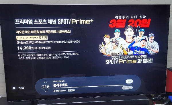 스포티비 프라임은 TV채널 상품으로 TV에서 시청이 가능합니다.