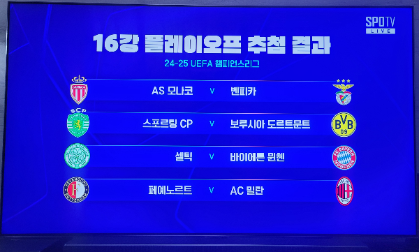 ⭕ 챔피언스리그 16강 PO 대진 추첨 결과