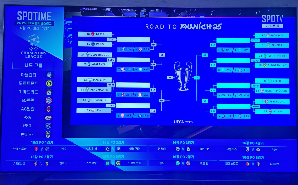 24-25 UEFA 챔피언스리그 16강 PO 대진 추첨 결과