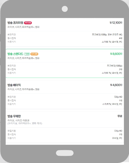 얼마전까지 베이직, 스탠다드, 프리미엄등 3가지 종류의 티빙 요금제가 있었는데,