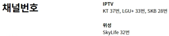 | SBS Plus | 37번 | 33번 | 28번 | 32번 |